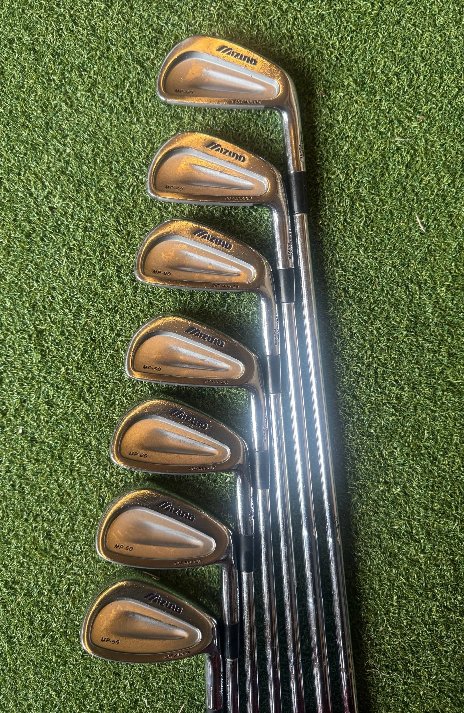 Very clean Mizuno MP 60 4-PW set. Faces have been sand-blasted. Clubs are buffed &Polished, Shafts- Dynamic Gold S300 shafts offer a good balance of distance and control. Loft and Lie- have been adjusted to factory defaults, ensuring that the clubs are set up to provide optimal performance. Swing weights have been set to between D2-D3 which offers good balance. Length- standard length. Lamkin golf grips.