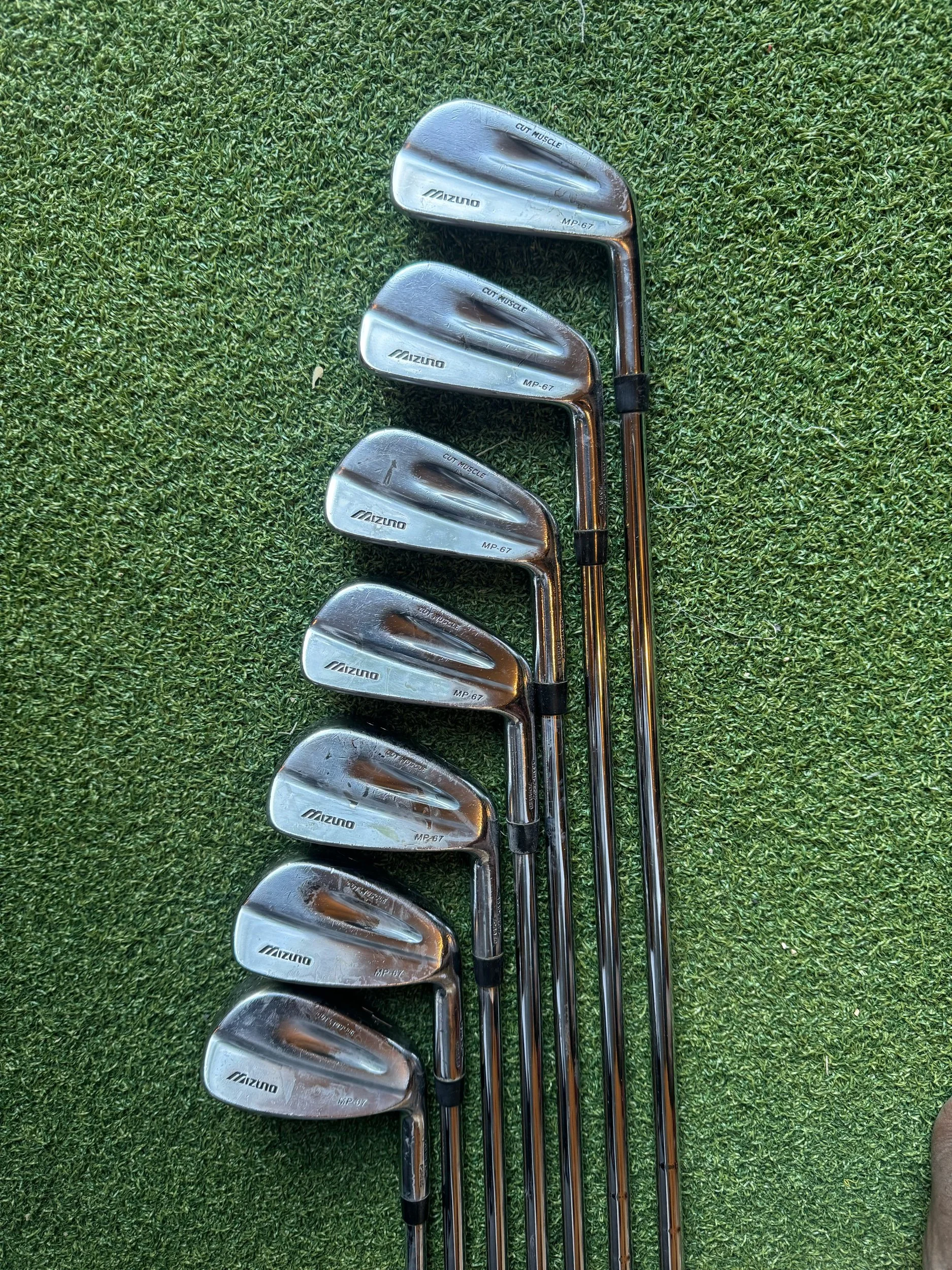 Very clean Mizuno MP 30 4-PW set. Faces have been sand-blasted. Clubs are buffed &Polished, Shafts- Dynamic Gold S300 shafts offer a good balance of distance and control. Loft and Lie- have been adjusted to factory defaults, ensuring that the clubs are set up to provide optimal performance. Swing weights have been set to between D2-D3 which offers good balance. Length- standard length. Golf pride grips.